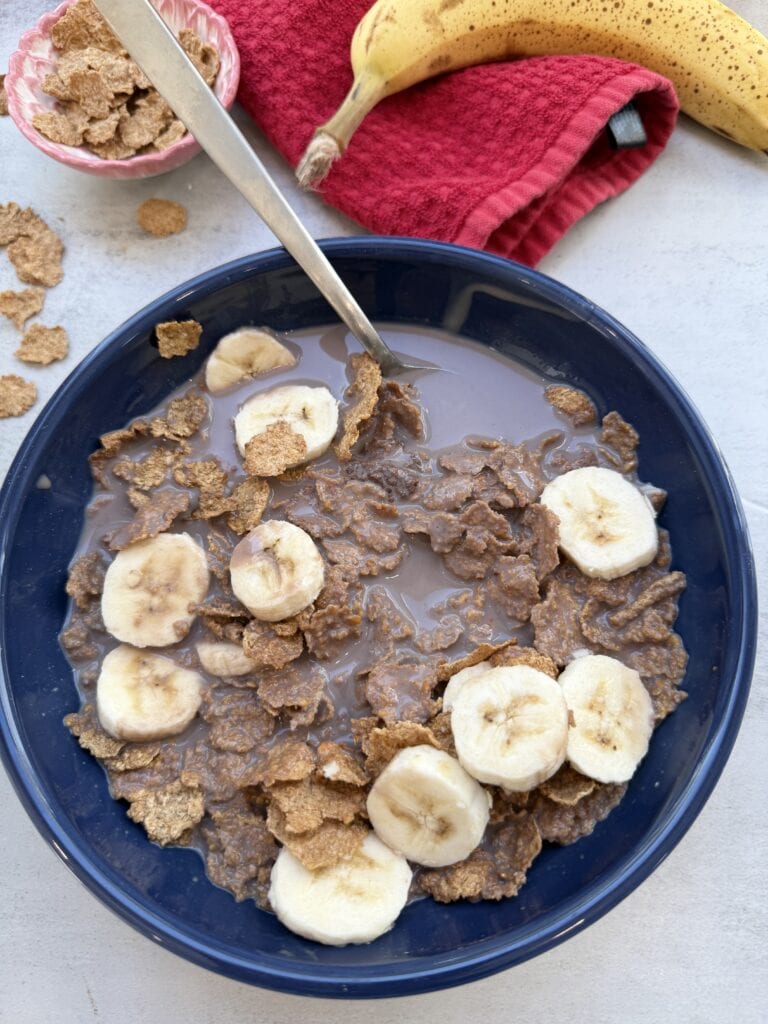 4. Cereal & milk: cereal + milk of your choice + banana slices