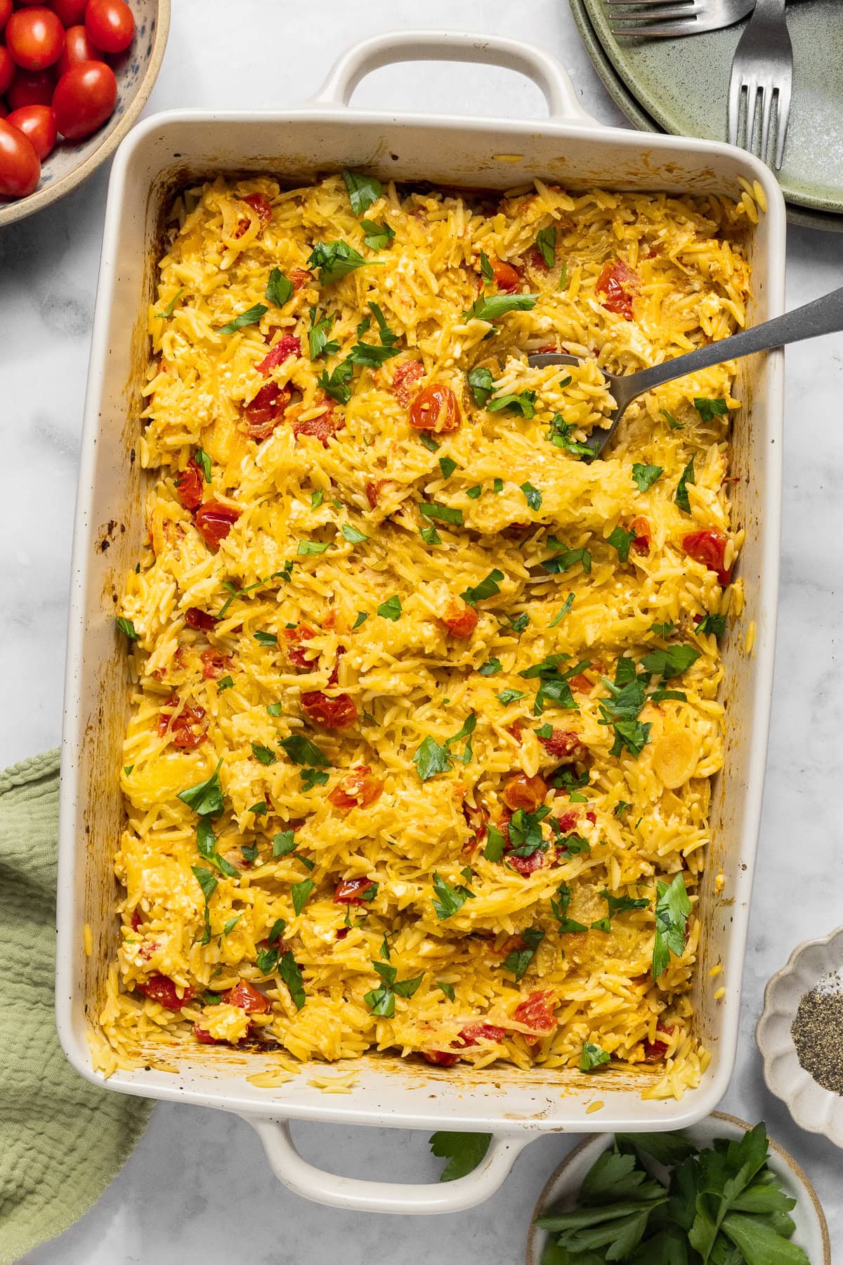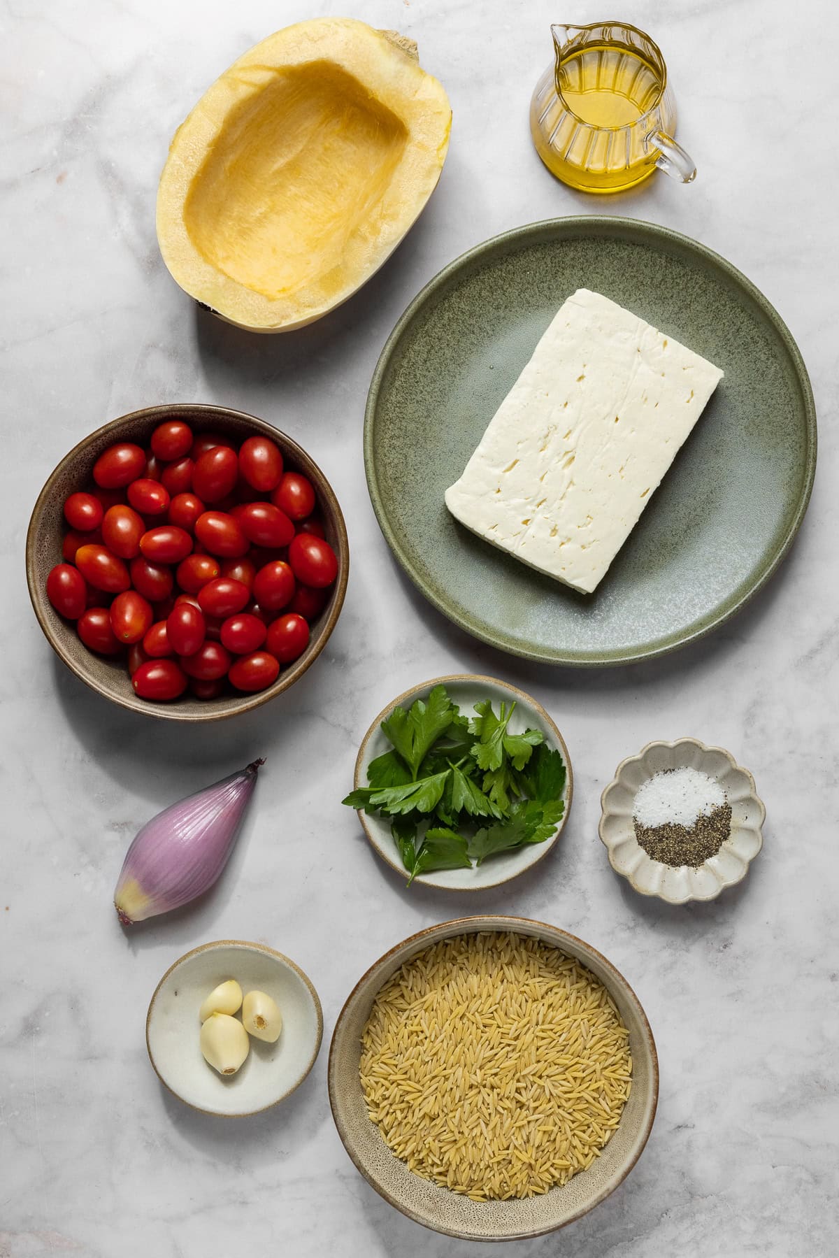 Baked Feta Spaghetti Squash and Orzo