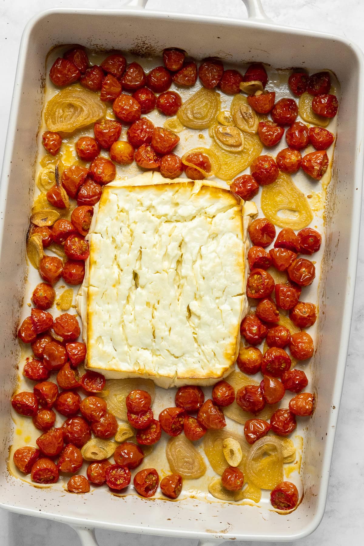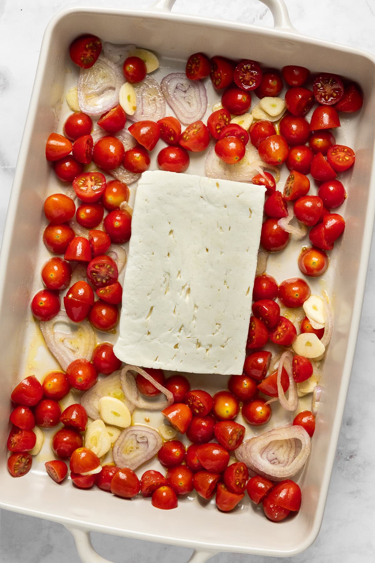 Add feta to baking dish