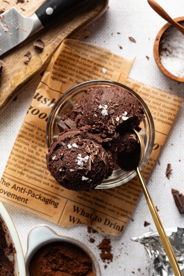You can use an ice cream scooper to scoop. Optional to add flaky salt on top!